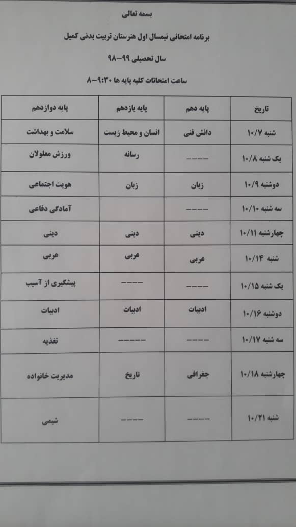 نظرات کاربران درباره خبر "برنامه امتحانات دی ماه 98"
